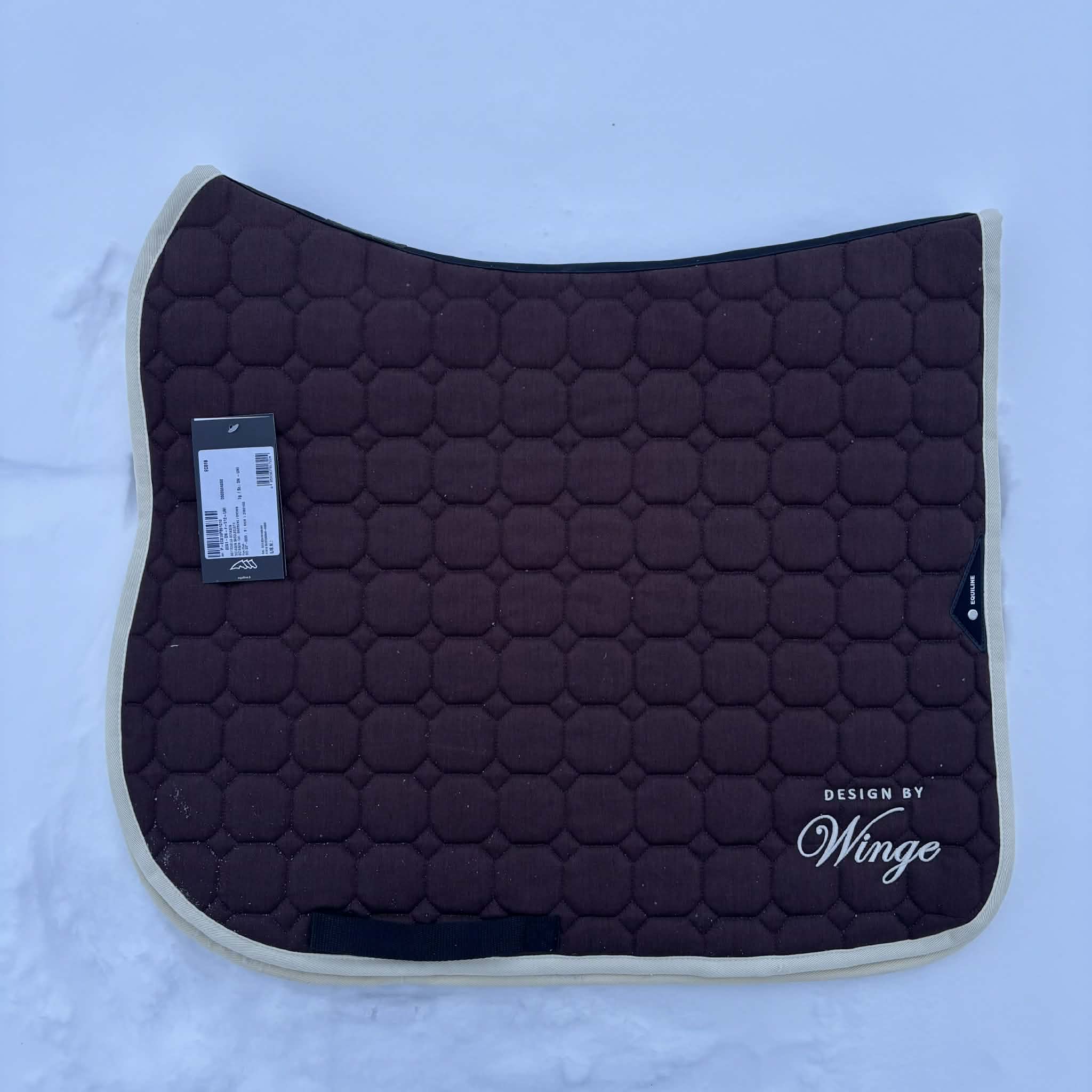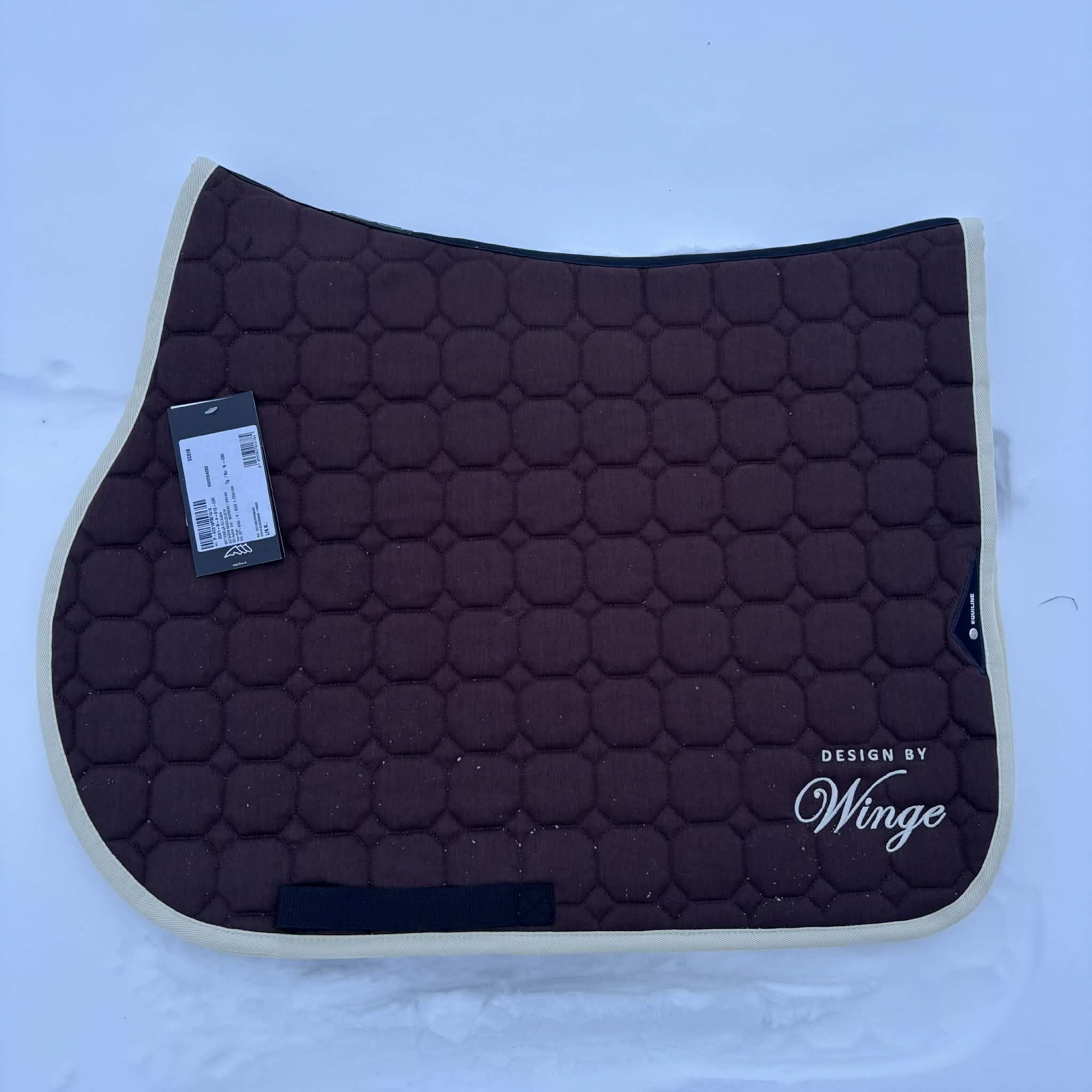 Octagon Schabrak från Equiline. Brunt med beige logga och kantband